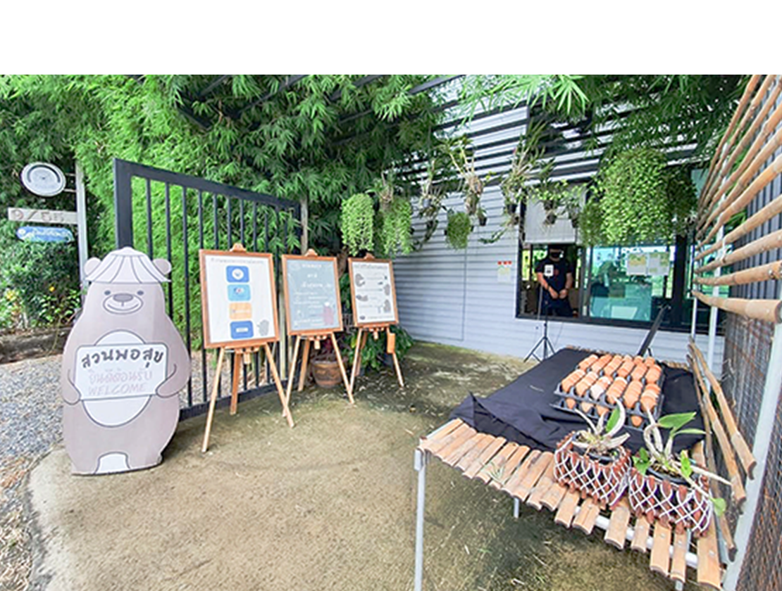 แต่ด้วยความโชคดีที่เรามี ที่ดินติดกับริมน้ำเราเลยเกิดความคิดที่อยากจะเปิดเป็นสวนอาหาร โดยนำผักสวนครัวที่ปลูกจากบริเวณพื้นที่ด้านหลังมาแปรรูปขาย นำผักที่ได้ มาทำเป็นเมนูอาหาร เครื่องดื่ม หรือแม้กระทั่งขนมเค้กเบเกอรี่ต่างๆ ทุกอย่างล้วนเป็นของออแกนิค ปลอดสาร ส่วนพื้นที่ตรงกลางตั้งใจทำเป็นสวนพักผ่อน ถ่ายรูป ซึ่งเราอยากได้บรรยากาศเก็บผักสดๆในสวนอยู่กับธรรมชาติ เหมือนการมาเที่ยวบ้านเพื่อนมากกว่าเหมือนมาคาเฟ่ มาแล้วได้อะไรดีๆ กลับไปรวมถึงความสุข
